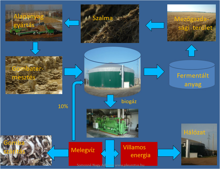 Tovább »2018. június 7-én került sor Budapesten a Circular Hungary Program keretében a “Körforgásosság az élelmiszerláncban” című szemináriumra, mely az élelmiszertermelés különböző fázisaiban – a mezőgazdaságtól a vendéglátóiparig – mutatott be vállalati gyakorlatokat a körforgásos szemlélet alkalmazásaira. Cégünk ügyvezetője, Somosné Dr. Nagy Adrienn is meghívást kapott a rendezvényre. ,,Körforgásos tápanyag- és energiahasznosítás a gombatermesztésen keresztül” című eladásában ismertette, hogy a hazai gombatermesztés mezőgazdasági melléktermékekre, elsősorban szalmára alapozott. Bemutatásra került a Pilze-Nagy Kft.-nél működő laskagomba-biogáz termelési rendszer, amelyben a laskagomba-termesztés szerves hulladék-anyagaiból (letermett komposzt) a biogáz üzemben megújuló energiát és tápanyagokban gazdag biotrágyát állítunk elő. Ebben a termelési rendszerben a laskagomba-termesztés, megújuló energiatermelés és a gabonatermesztés együttműködése valósul meg.